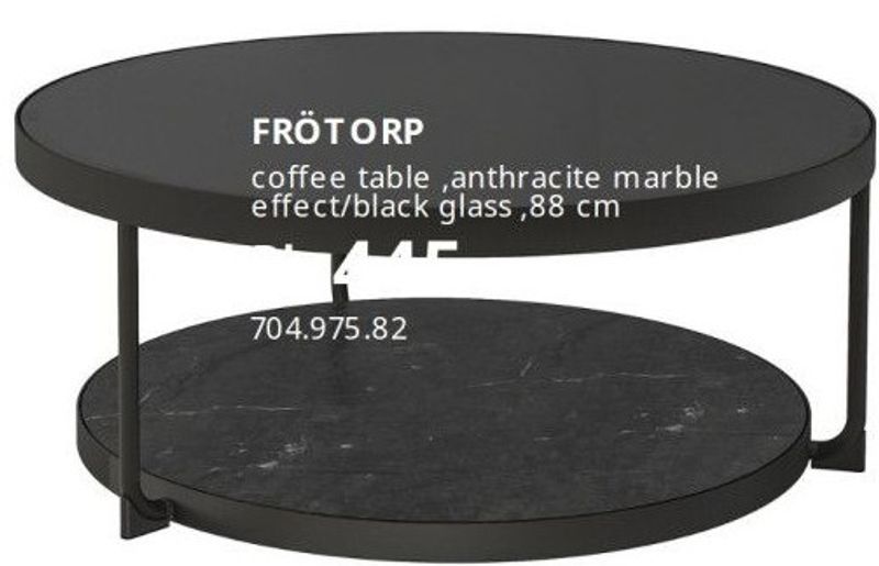 FRÖTORP coffee table, anthracite marble effect/black glass, 88 cm