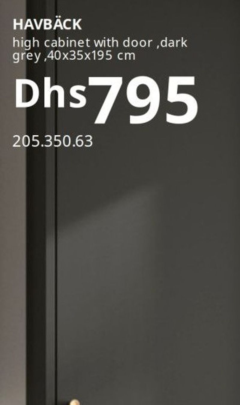 HAVBÄCK high cabinet with door, dark grey, 40x35x195 cm