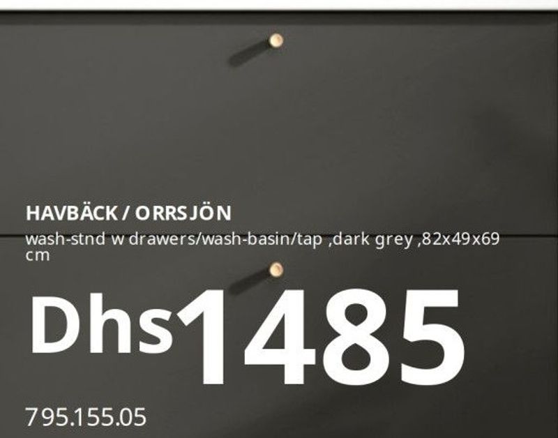 Home, Furniture & PetsHAVBÄCK / ORRSJÖNHAVBÄCK / ORRSJÖN wash-stand with drawers/wash-basin/tap, dark grey, 82x49x69 cm