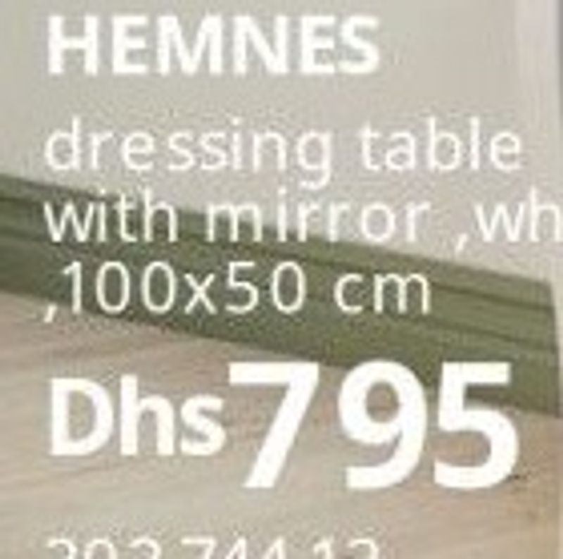 HEMNES dressing table with mirror in white, measuring 100x50 cm.