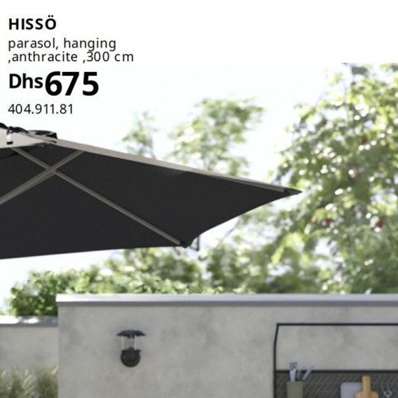 A HISSÖ hanging parasol in anthracite, measuring 300 cm, perfect for outdoor shade.