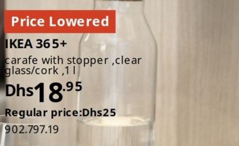 IKEA 365+ carafe with stopper, clear glass/cork, 1.1L