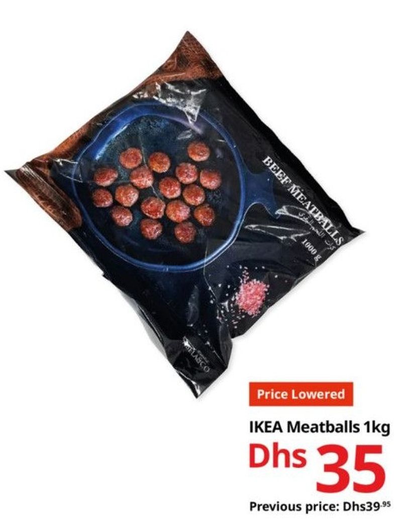 Frozen beef meatballs from IKEA, 1kg pack.