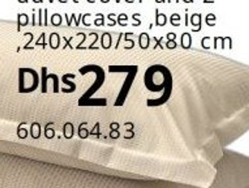 A set of beige duvet cover and two pillowcases, offering a soft and comfortable feel.