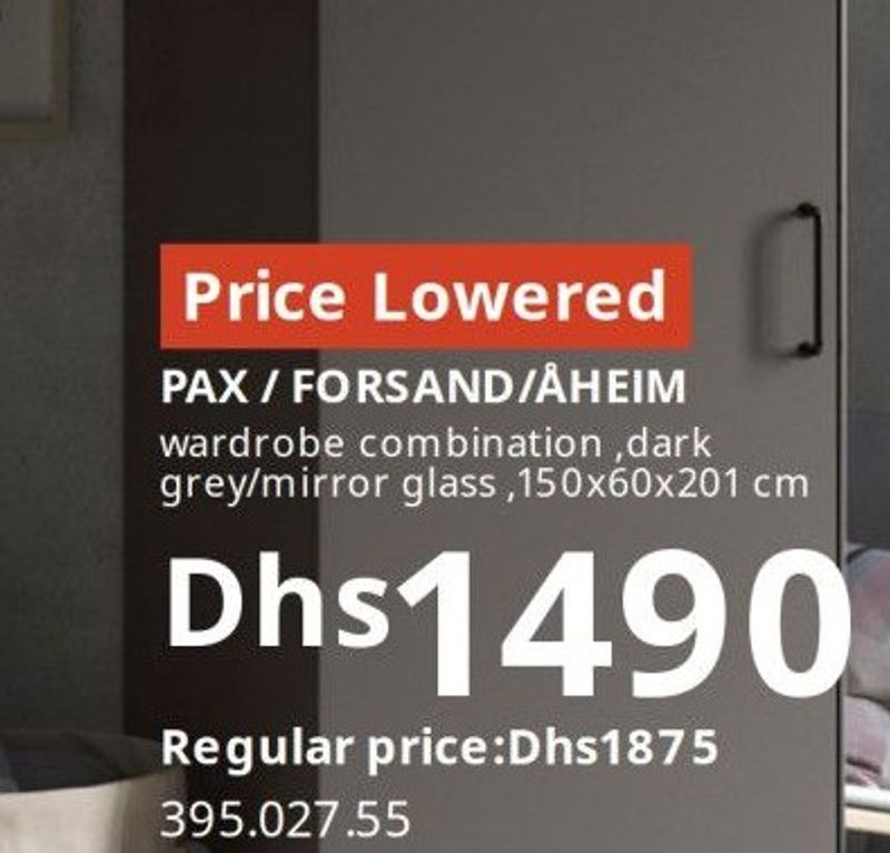 A dark grey wardrobe combination with mirror glass doors, measuring 150x60x201 cm, offered at a reduced price.