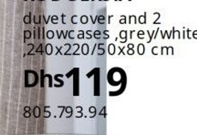 RODGERSIA duvet cover and 2 pillowcases in grey/white, sized 240x220/50x80 cm.