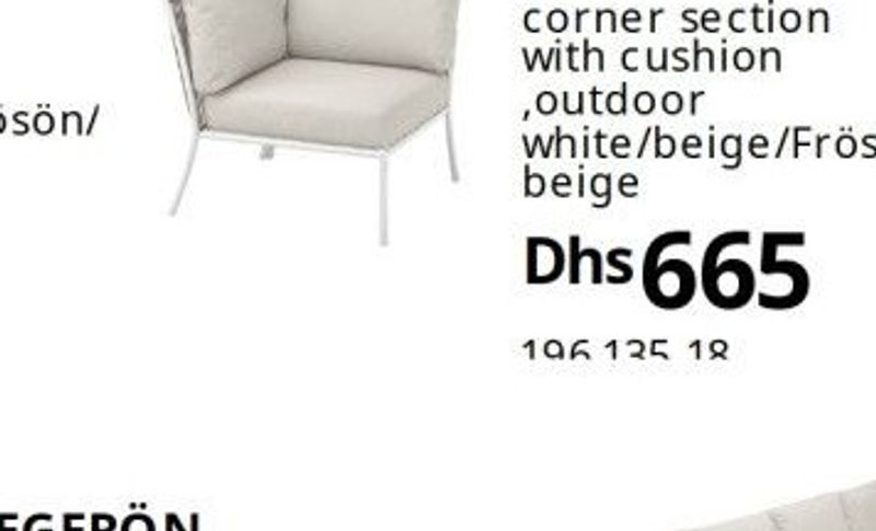 Corner section with cushion for an outdoor sofa in white/beige with Frösön/beige cushions from the SEGERÖN series.