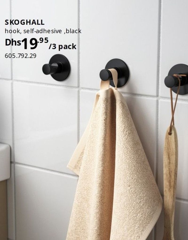 SKOGHALL hook, self-adhesive, black, 3 pack