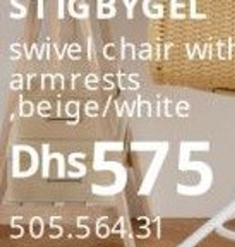 A stylish swivel chair with armrests in beige/white, perfect for a home office.