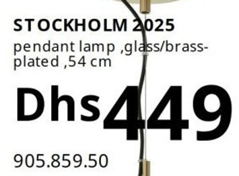 Pendant lamp with glass and brass-plated finish, 54 cm diameter, from the STOCKHOLM 2025 series.