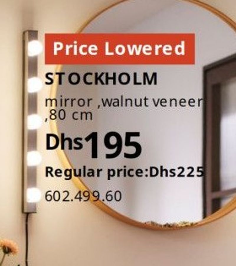 STOCKHOLM mirror, walnut veneer, 80 cm