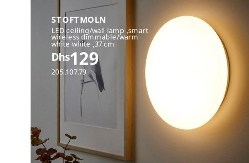 STOFTMOLN LED ceiling/wall lamp, smart wireless dimmable/warm white white, 37 cm