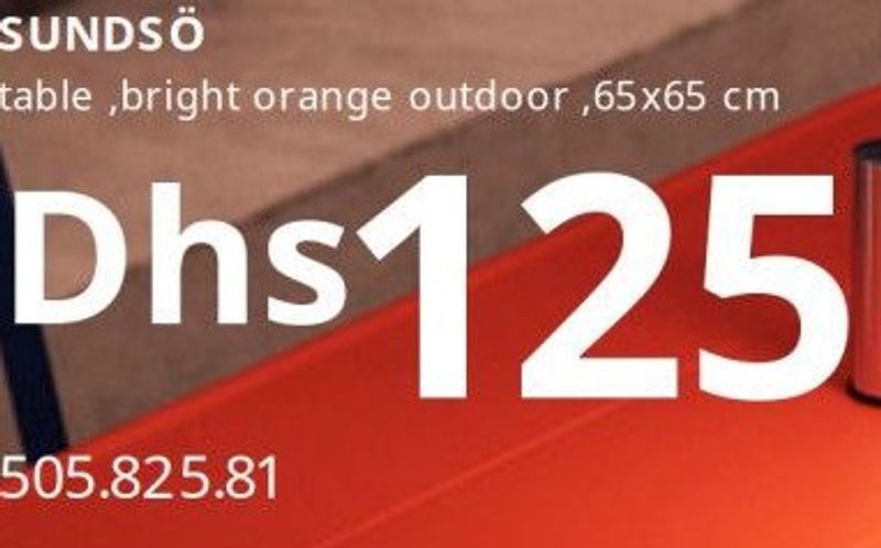 Outdoor table in bright orange, 65x65 cm, from the SUNDSÖ series.