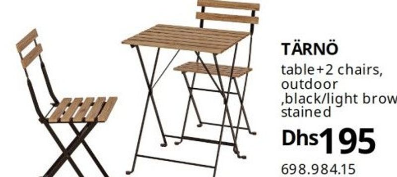 TÄRNÖ table + 2 chairs, outdoor, black/light brown stained