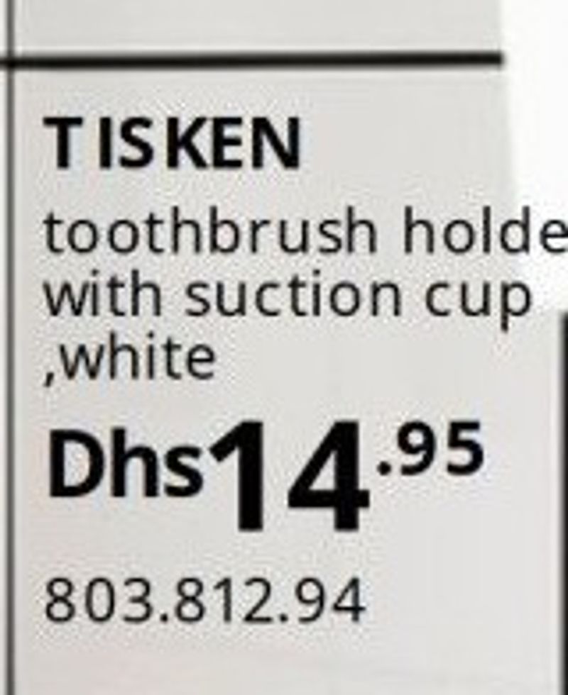 A white toothbrush holder with a suction cup from TISKEN, offering easy installation without drilling.