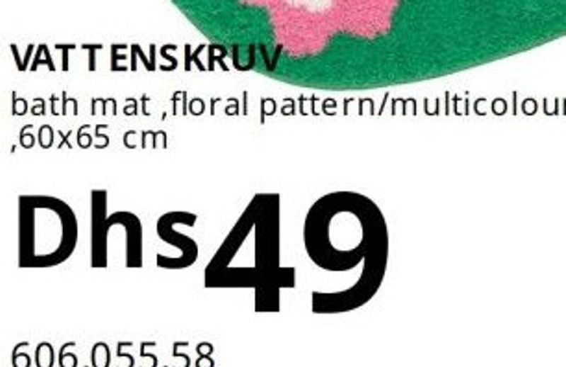 VATTENSKRUV bath mat, floral pattern/multicolour, 60x65 cm