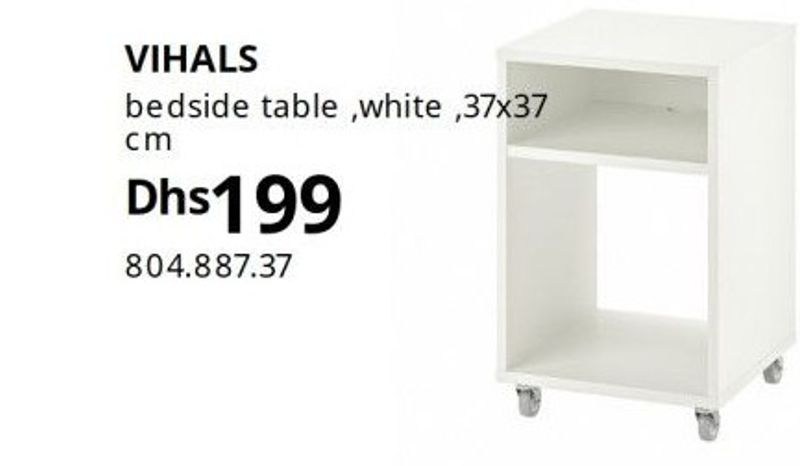 VIHALS bedside table, white, 37x37 cm