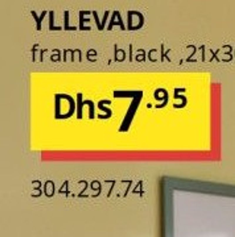A black picture frame, 21x30 cm, from the YLLEVAD series, suitable for displaying photos or art.