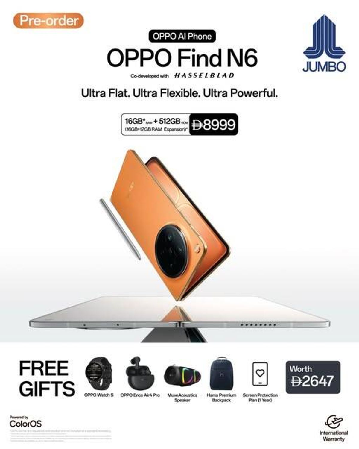 Jumbo has released OPPO Find N6 Sale from Jumbo until 10th April from Apr 6, 2026 to Apr 10, 2026 in all branches.