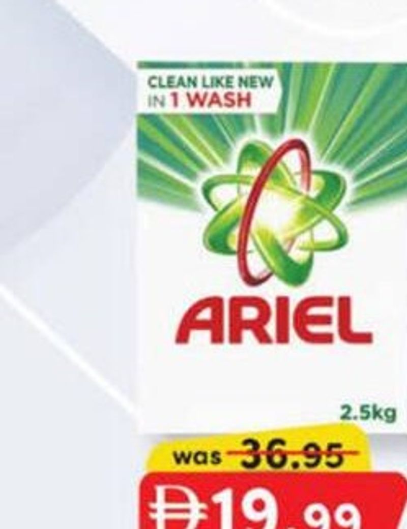 Ariel detergent powder, 2.5 kg, for clean like new in 1 wash.