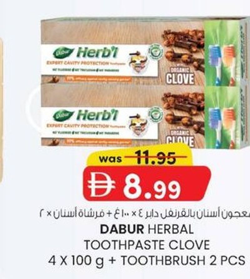 DABUR HERBAL TOOTHPASTE CLOVE 4 X 100 g + TOOTHBRUSH 2 PCS