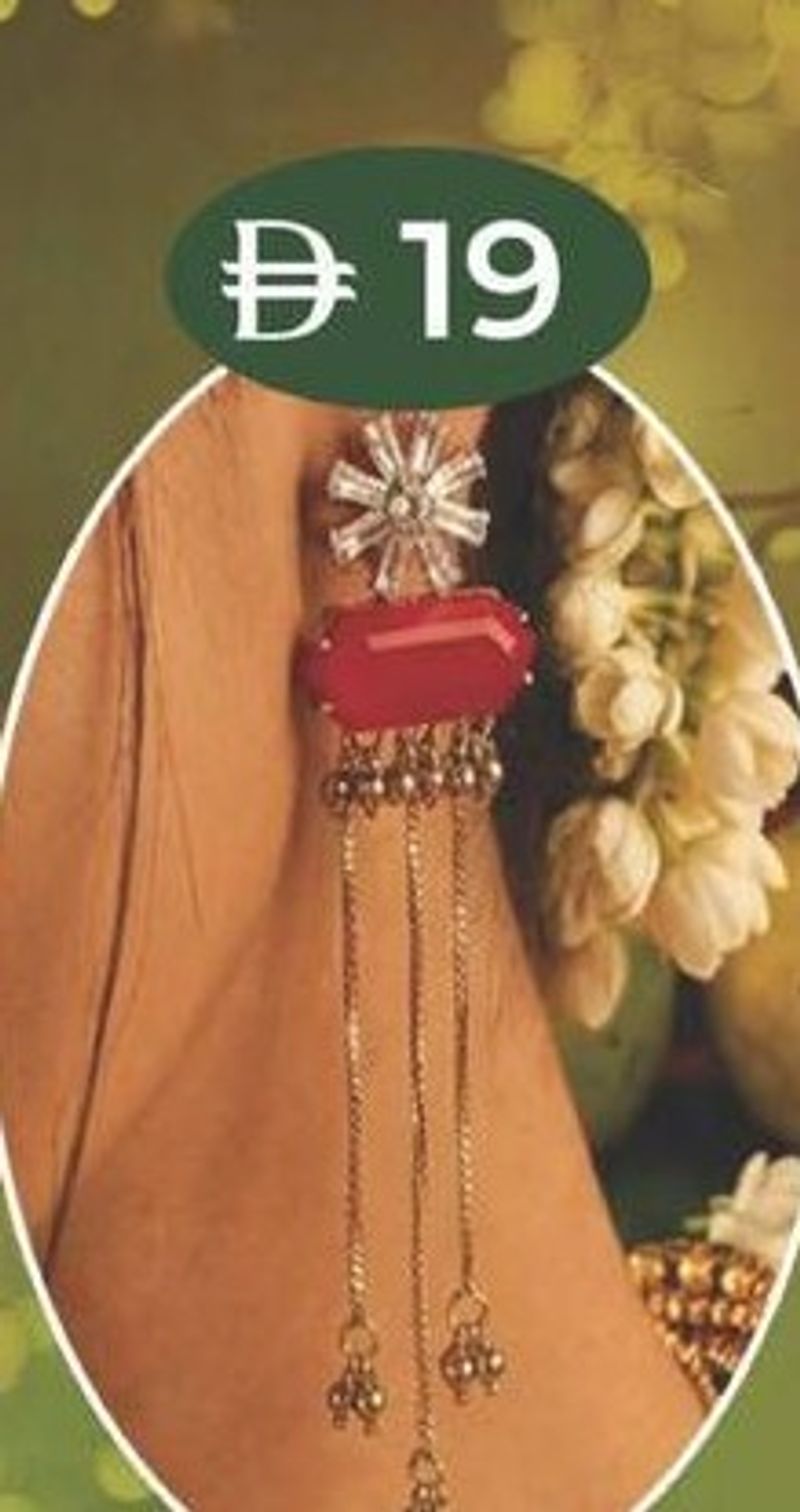 Ladies Earring (Red Stone & Chain)