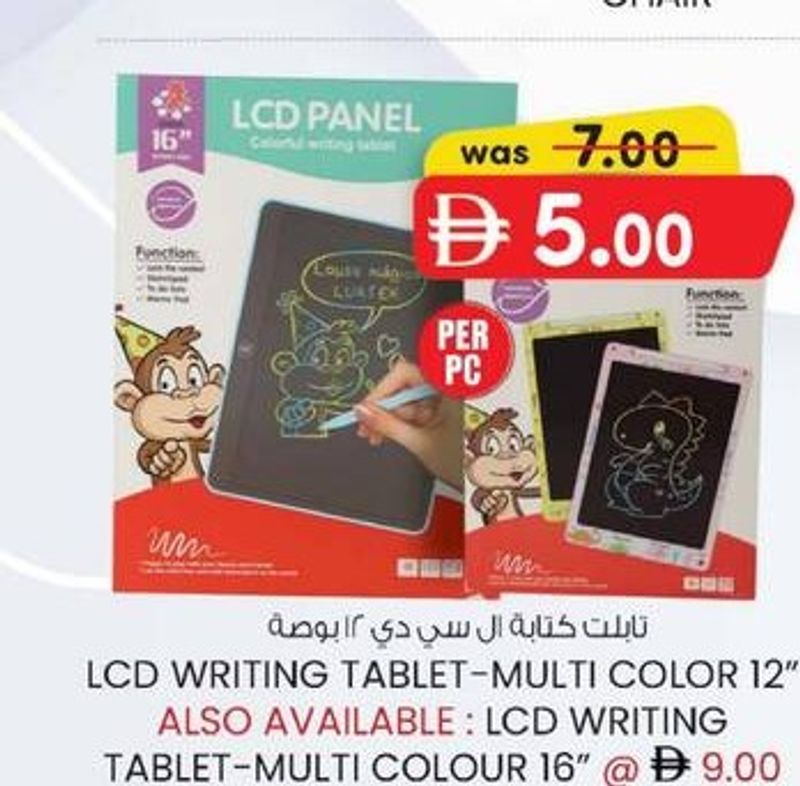 A 12-inch multi-color LCD writing tablet, also available in 16-inch for AED 9.00.