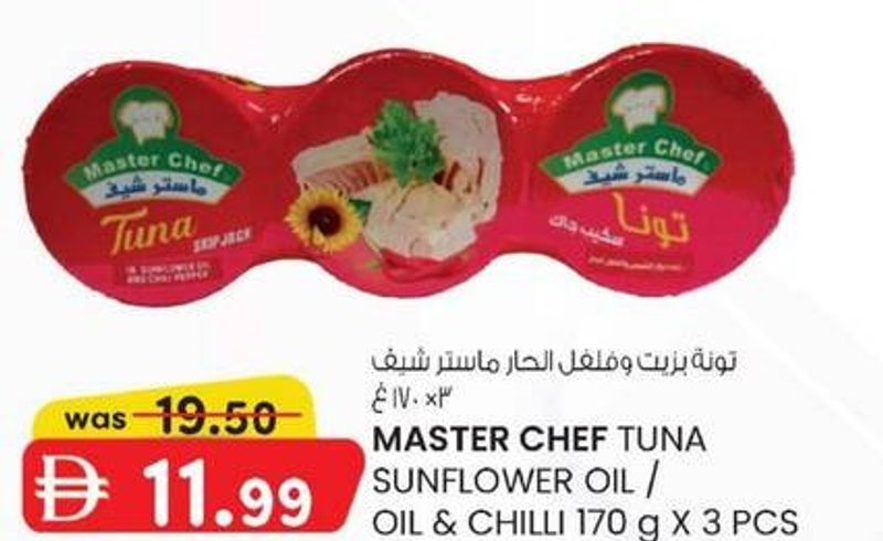 Pack of 3 Master Chef tuna in sunflower oil or oil & chilli, 170g each.