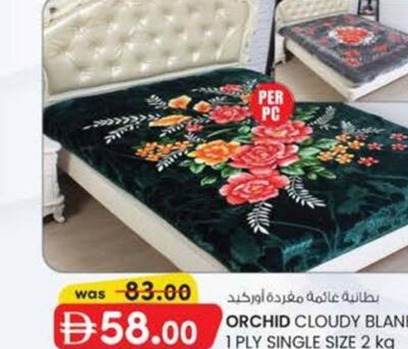 A single-ply cloudy blanket, single size, weighing 2 kg, offered at a discounted price.
