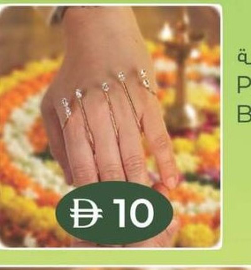Delicate palm cuff bracelet with small decorative elements.