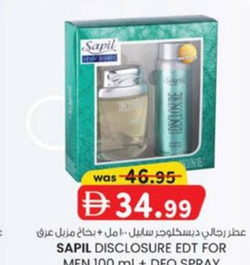 Sapil Disclosure Eau de Toilette for men 100ml with a deodorant spray.