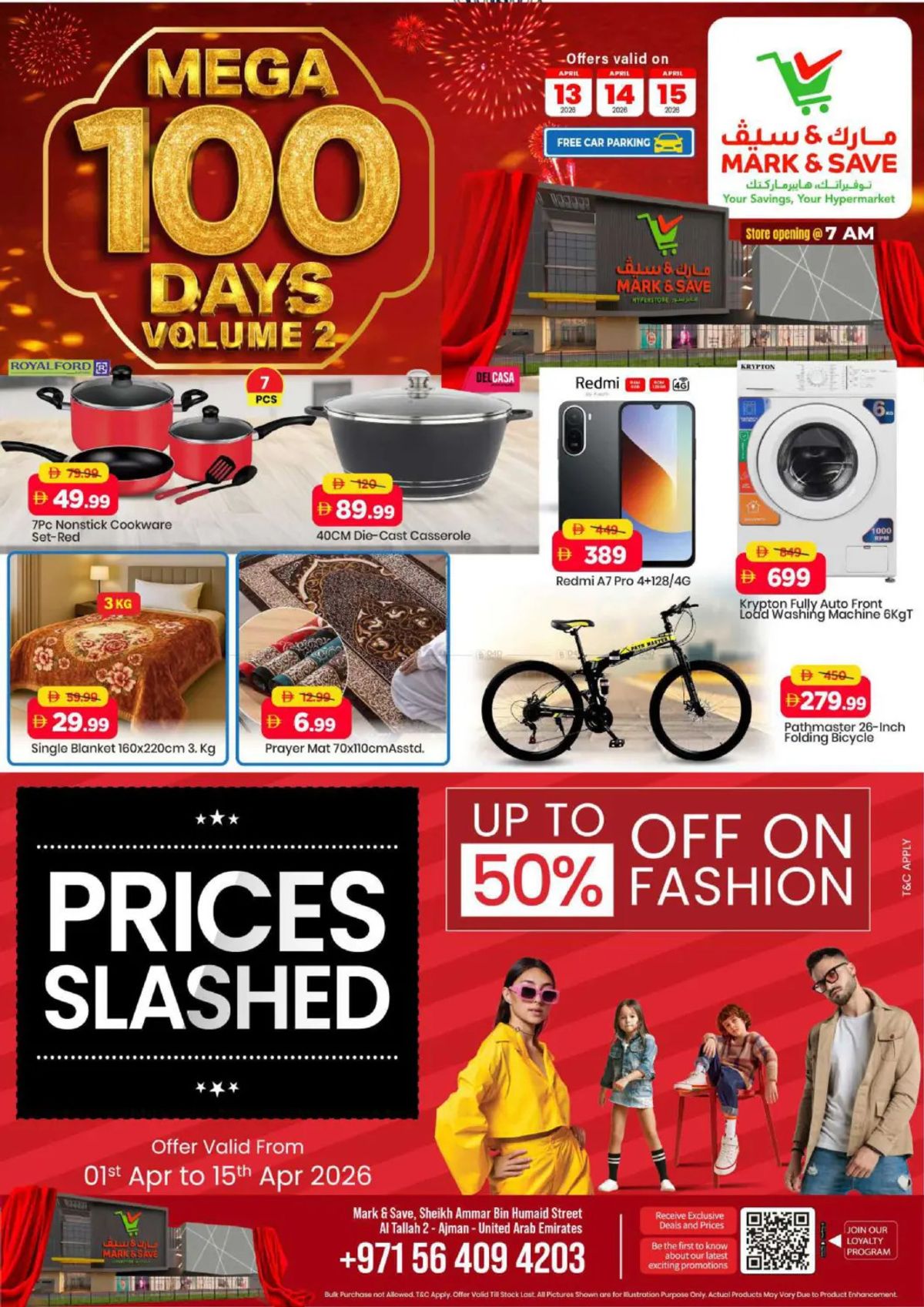 Mark & Save has released Celebrate 100 Days catalog in Ajman, UAE - Al Tallah 2 from Apr 13, 2026 to Apr 15, 2026 in 1 branch(s).