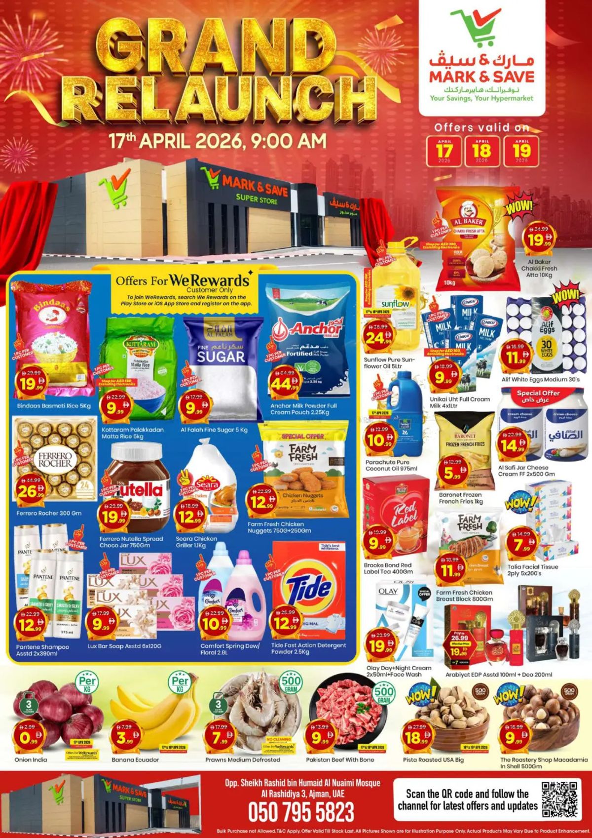 Mark & Save has released Grand Relaunch catalog in Ajman, UAE - Al Rashidiya 3 from Apr 17, 2026 to Apr 19, 2026 in 1 branch(s).