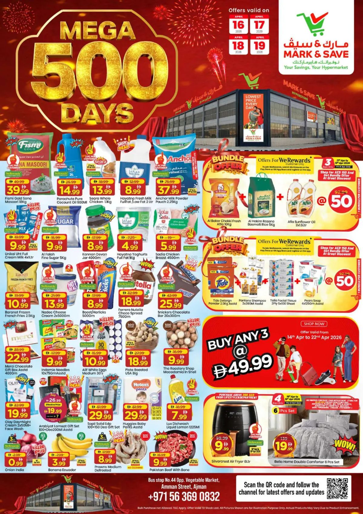 Mark & Save has released Mega 500 Days catalog in Ajman, UAE - Industrial Area 1 from Apr 16, 2026 to Apr 19, 2026 in 1 branch(s).