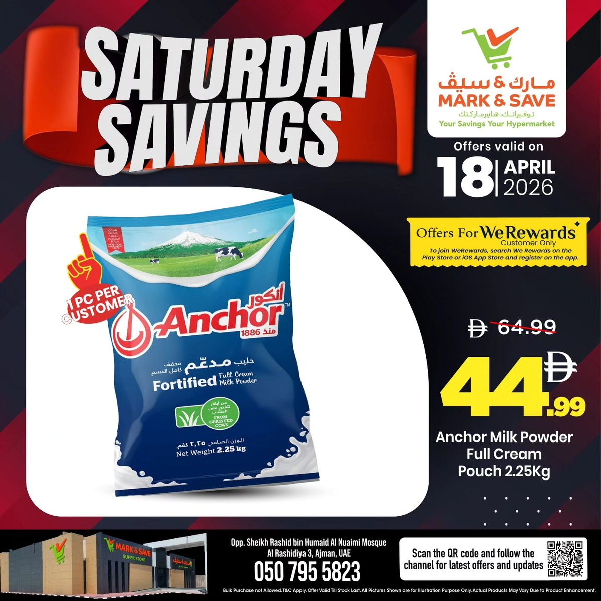 Mark & Save has released Saturday Deals catalog in Ajman, UAE - Al Rashidiya 3 from Apr 18, 2026 to Apr 18, 2026 in 1 branch(s).