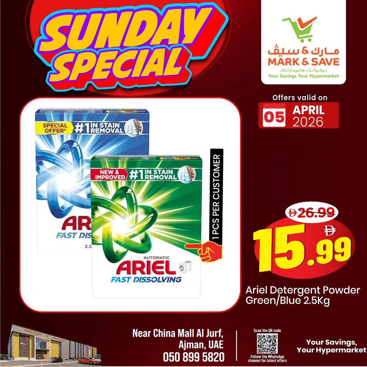 Mark & Save has released Sunday Deals catalog in Ajman, UAE - Al Jurf from Apr 5, 2026 to Apr 5, 2026 in 1 branch(s).