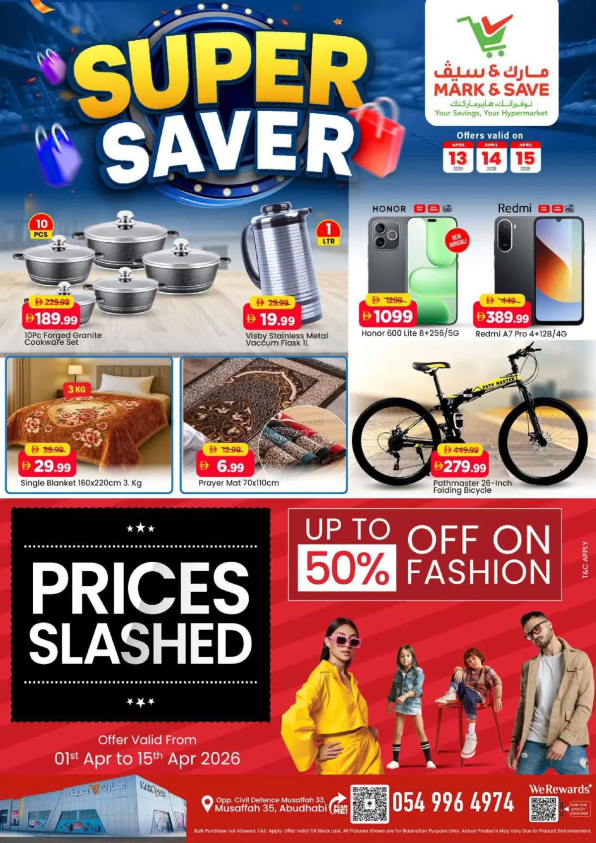 Mark & Save has released Super Deals catalog in Abu Dhabi, UAE - Musaffah from Apr 13, 2026 to Apr 15, 2026 in 1 branch(s).