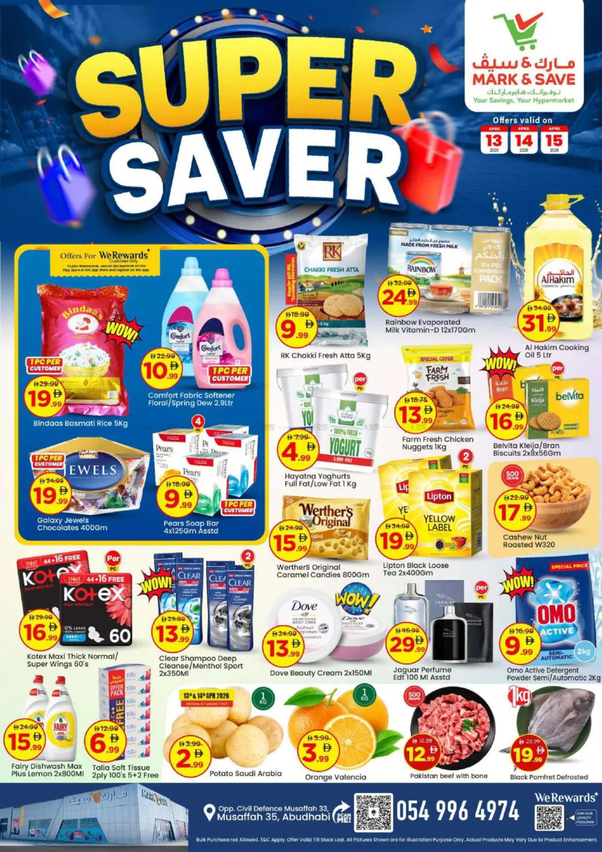 Mark & Save has released Super Saver catalog in Abu Dhabi, UAE - Musaffah from Apr 13, 2026 to Apr 15, 2026 in 1 branch(s).