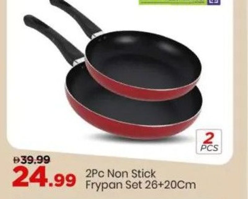 A 2-piece nonstick frypan set from Royalford, including 26cm and 20cm pans.