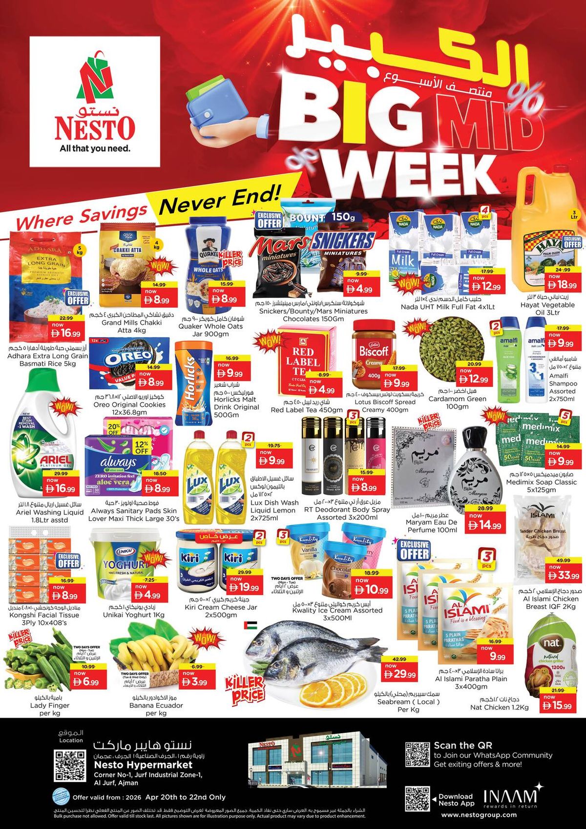 Nesto has released Midweek Deals catalog in Ajman, UAE - Al Jurf Industrial Area from Apr 20, 2026 to Apr 22, 2026 in 1 branch(s).