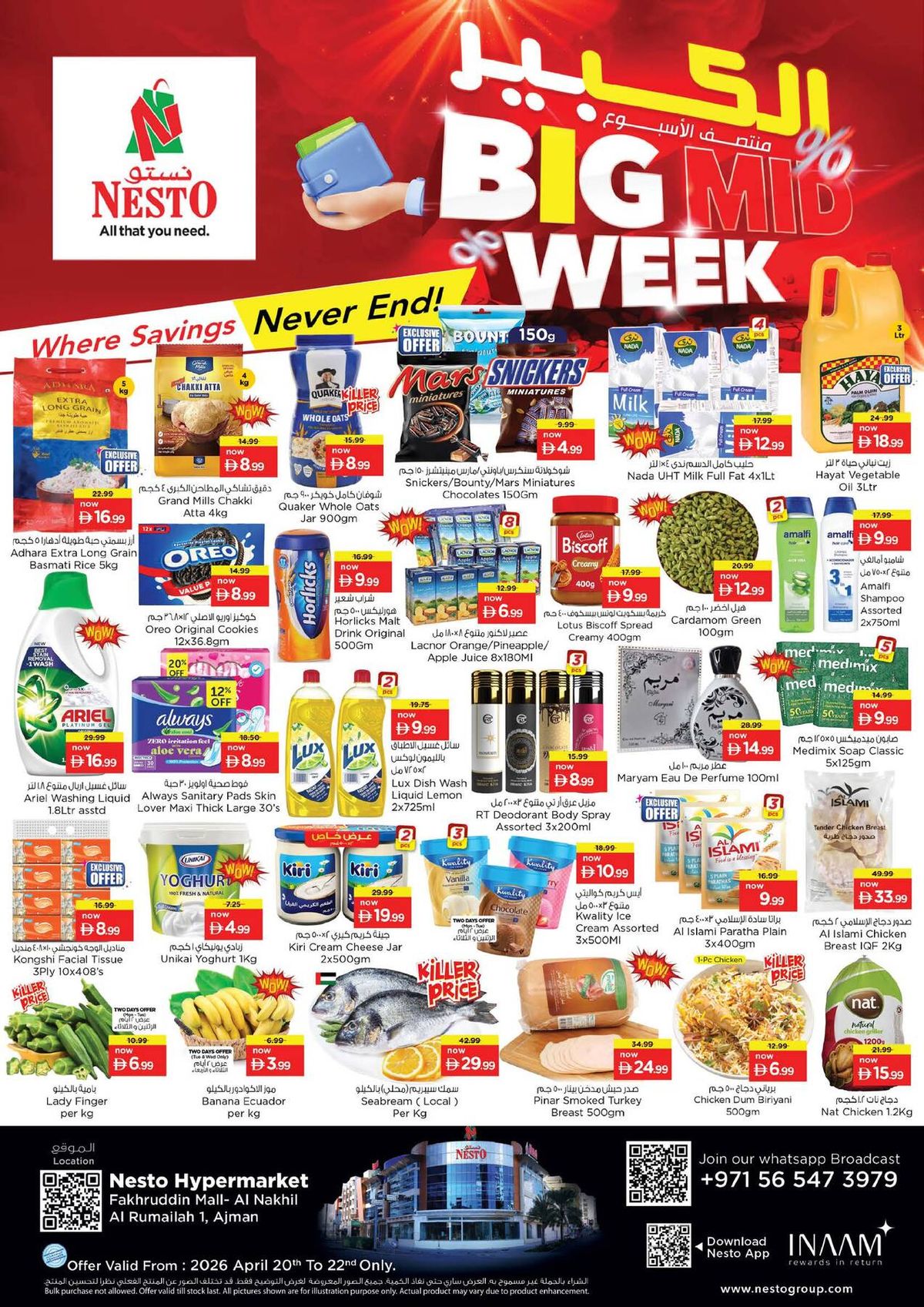 Nesto has released Midweek Deals catalog in Ajman, UAE - Fakhruddin Mall from Apr 21, 2026 to Apr 22, 2026 in 1 branch(s).