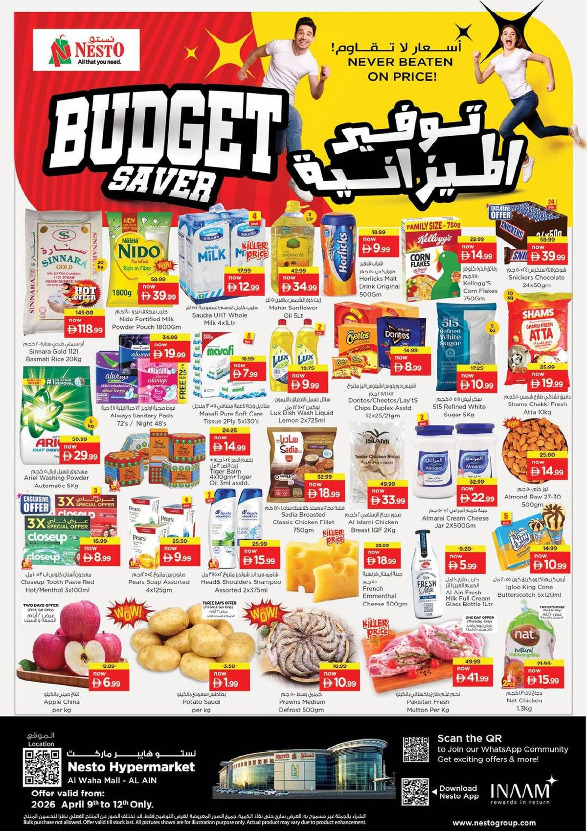 Nesto has released Weekend Grabs catalog in Al Ain, UAE - Al Waha Mall from Apr 9, 2026 to Apr 12, 2026 in 1 branch(s).