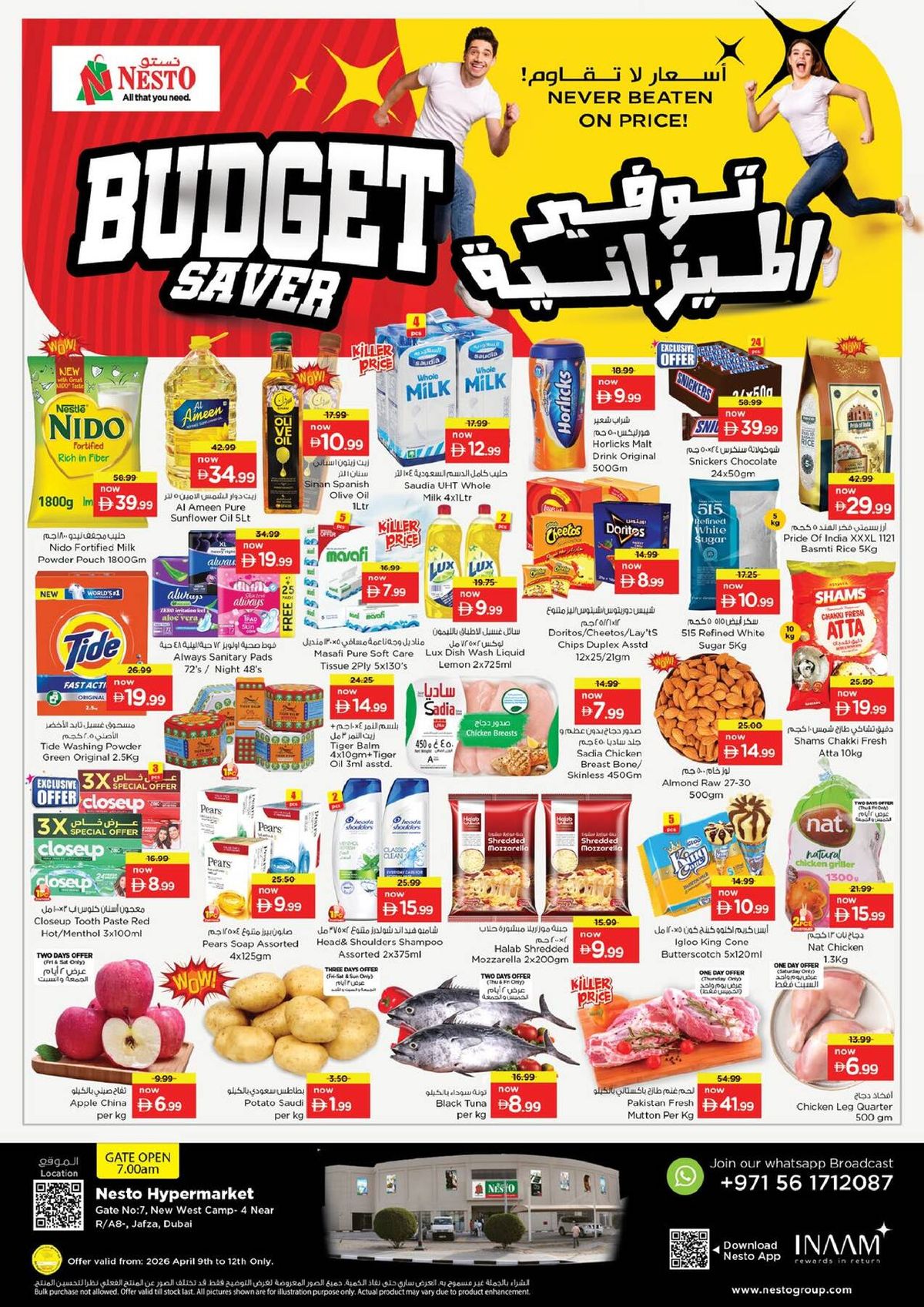 Nesto has released Weekend Grabs catalog in Dubai, UAE - NESTO HYPERMARKET LLC, JAFZA from Apr 9, 2026 to Apr 12, 2026 in 1 branch(s).