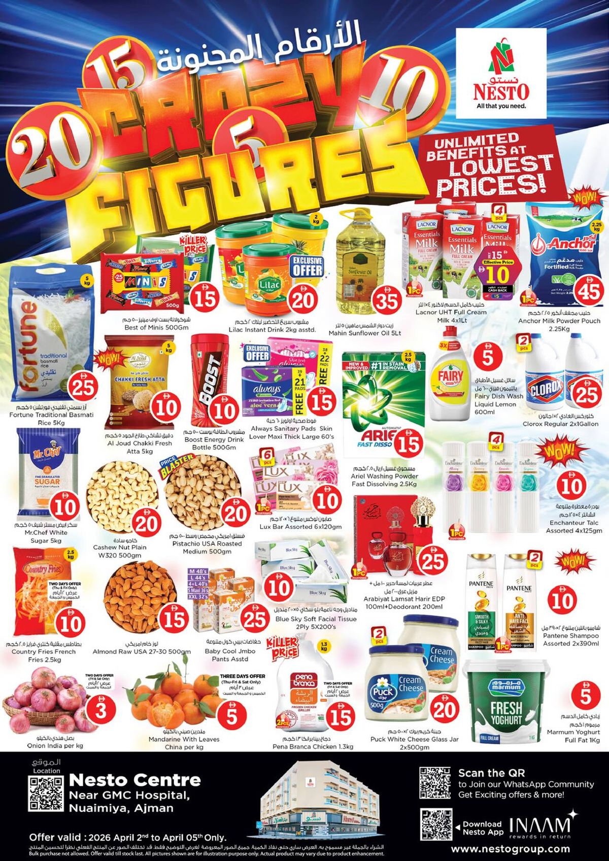 Nesto has released Weekend Grabs catalog in Ajman, UAE - NESTO CENTER,NUAIMIYA from Apr 2, 2026 to Apr 5, 2026 in 1 branch(s).