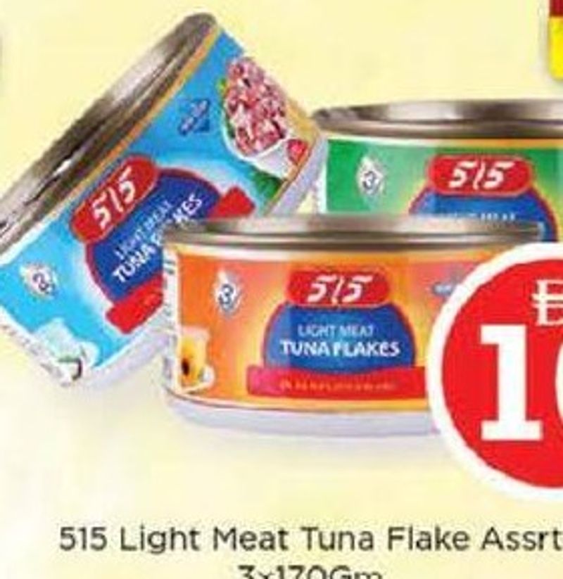 Assorted light meat tuna flakes from 515, pack of 3, each 170gm.