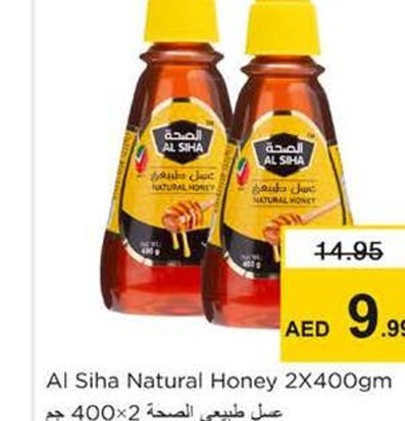 Al Siha natural honey, a pack of two 400gm bottles.