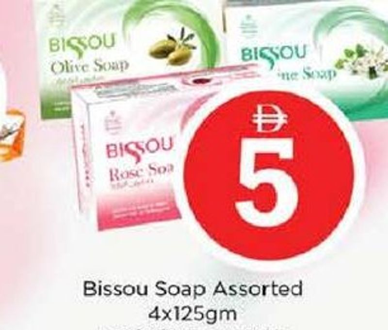 Assorted Bissou soap bars in a pack of 4, each weighing 125gm.