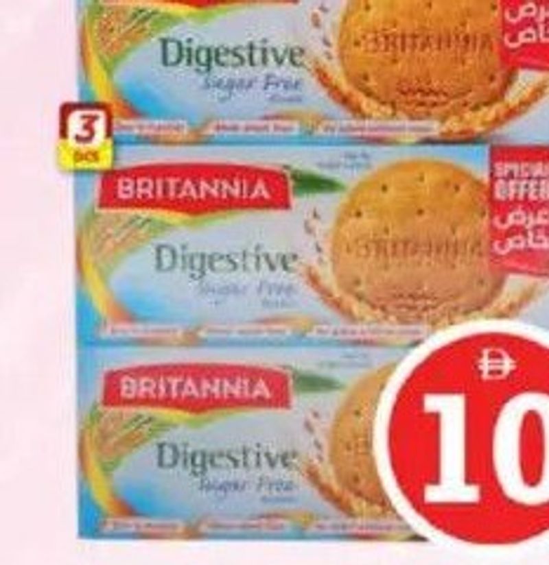 Britannia Sugar Free Digestive biscuits, a pack of three, 200gm each.