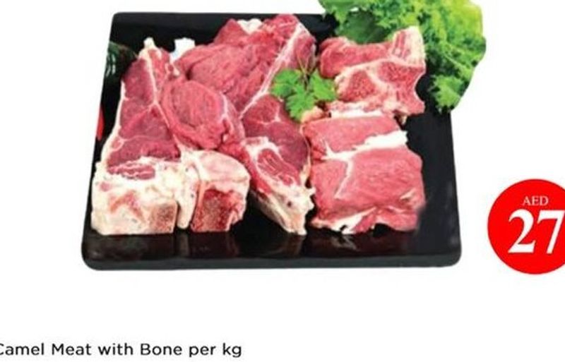 Fresh camel meat with bone, sold per kilogram, suitable for traditional recipes.