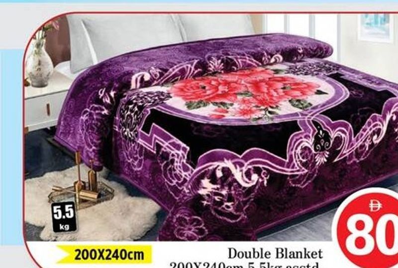 An assorted double blanket measuring 200x240cm and weighing 5.5kg, perfect for cozy nights.